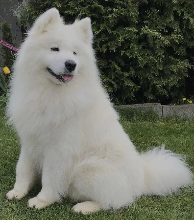 Bartholomew of Quenn Posázavská smečka je oficiálně krycím psem a my na něj nemůžeme být pyšnější! Je to sebevědomý a vyrovnaný pes s typickým samojedím úsměvem. Má výborné zdravotní výsledky – DKK A, DLK 0/0, oči čisté včetně gonioskopie – a se svými 60 cm v kohoutku je statný a elegantní pes. S typickým samojedím úsměvem a přátelskou povahou je to pes, který si získá srdce každého, koho potká. Věříme, že své skvělé vlastnosti předá i svým budoucím potomkům!